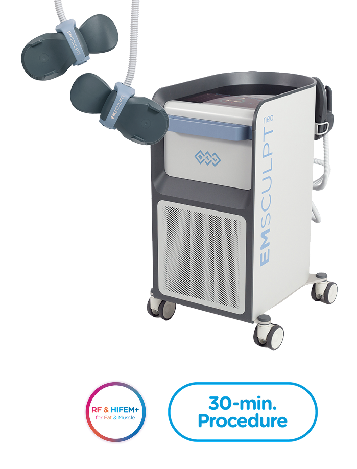 Let’s face it: life is hard and time is short. We want to help you achieve your goals in the fastest, easiest, and healthiest way possible. So let us introduce you to our friend, Emsculpt Neo! A step up from the original Emsculpt, Emsculpt Neo is a brilliant 2-in-1 body contouring procedure that utilizes its one-of-a-kind patented technology to build muscle and kill fat. In just a single 30-minute session, our Emsculpt Neo stimulates your muscles into completing a rhythm of supramaximal contractions, equivalent to nearly 6,000 sit-ups! A complete treatment series with just one treatment a week shows muscular biopsy results at the cellular level that are equivalent to having completed an intense HIIT (high-intensity interval training) program working out 3 times a week for 16 weeks.